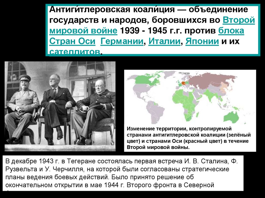 Антиги́тлеровская коали́ция — объединениегосударств и народов, боровшихся во Второй