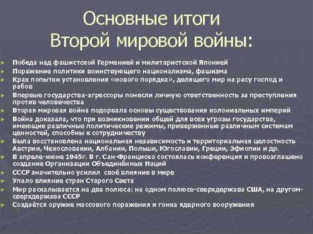 Принимало участие 61 государство80% населения Земли было охвачено войной