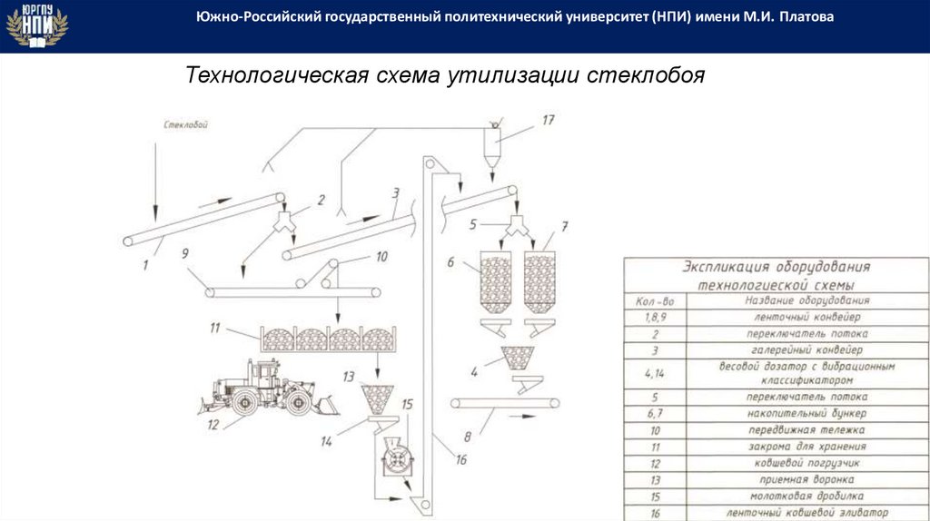 Южно-Российский государственный политехнический университет (НПИ) имени М.И. ПлатоваТехнологическая схема утилизации стеклобоя