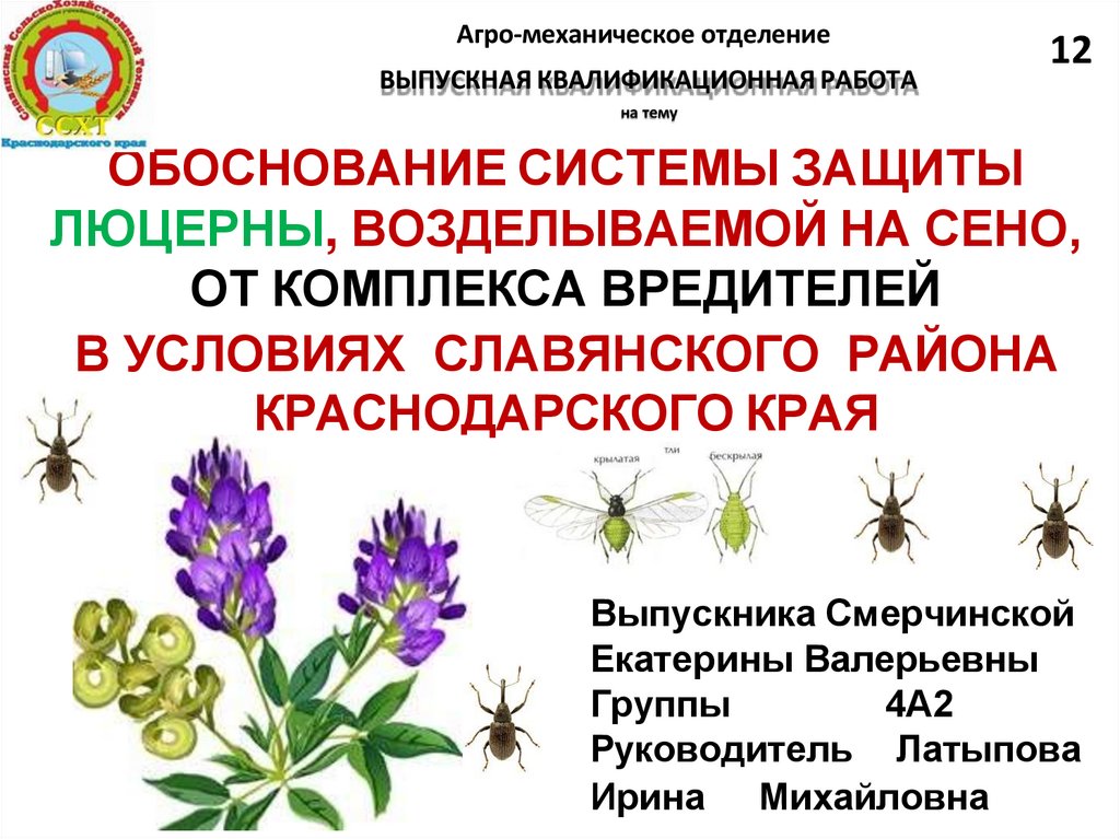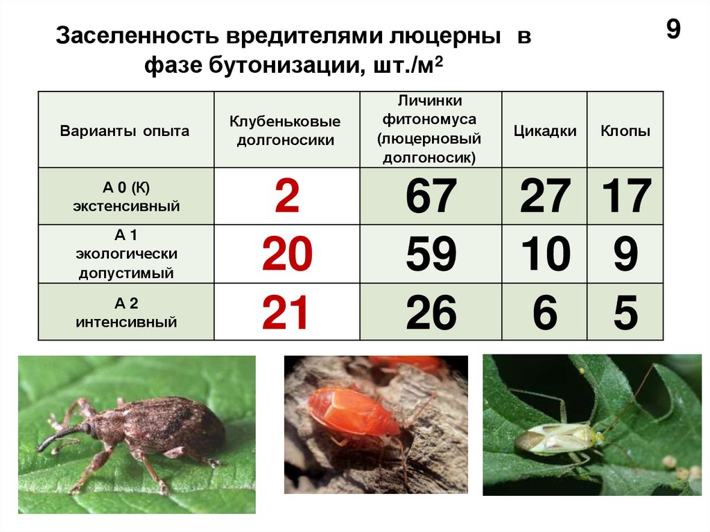 Обоснование системы защиты люцерны, возделываемой на сено, от комплекса вредителей