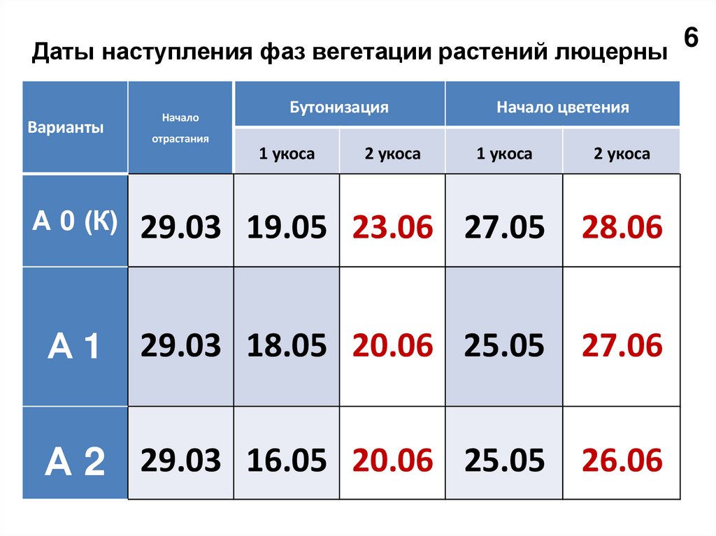 Наблюдения и учеты:1. Даты наступления фаз вегетации люцерны.