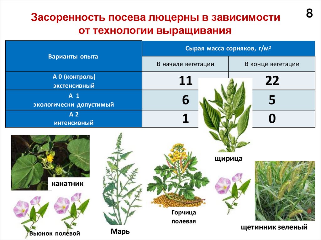 Засоренность посева люцерны в зависимостиот технологии выращивания