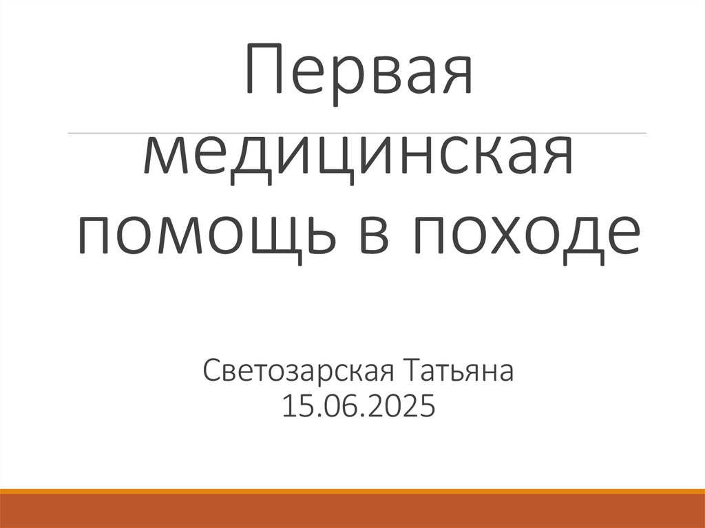 1. Первая медицинская помощь в походе Светозарская Татьяна 15.06.2025