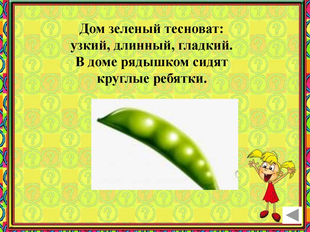 Дом зеленый тесноват:узкий, длинный, гладкий.