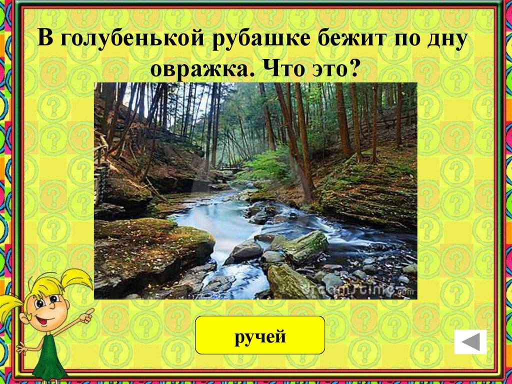 В голубенькой рубашке бежит по днуовражка. Что это?