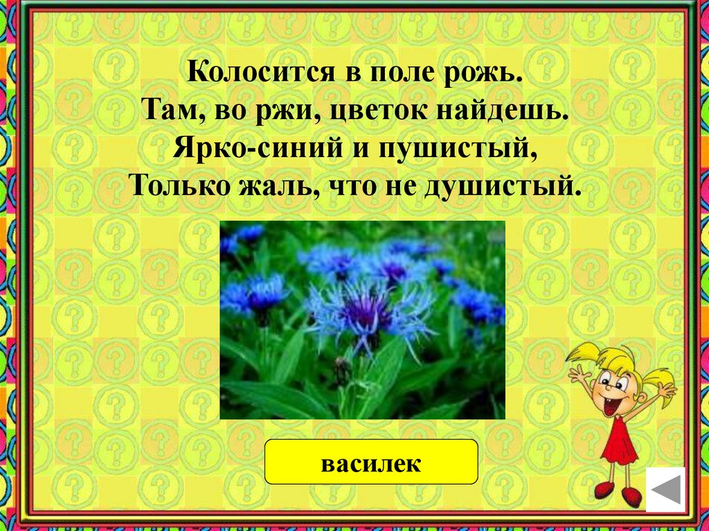 Колосится в поле рожь.Там, во ржи, цветок найдешь.