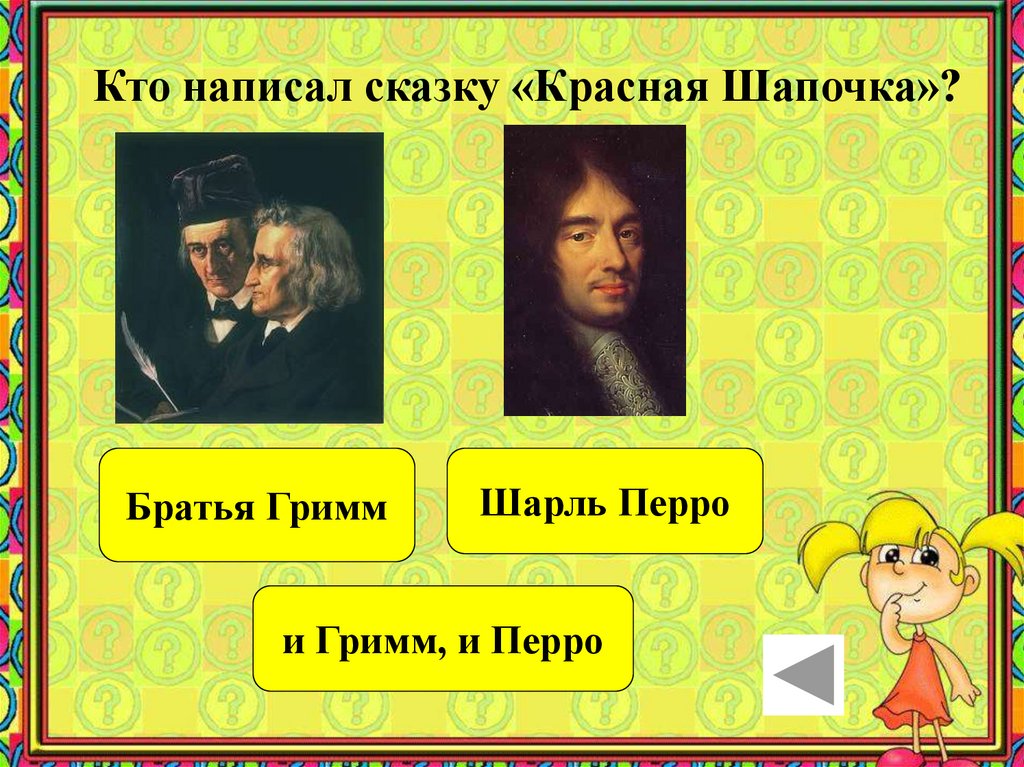 Кто написал сказку «Красная Шапочка»?Братья Гримм