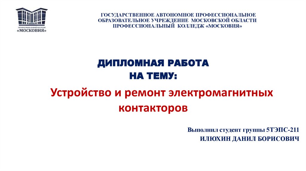 ПРОФЕССИОНАЛЬНЫЙ КОЛЛЕДЖ «МОСКОВИЯ»