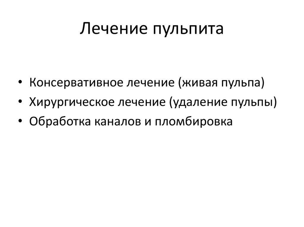 Лечение пульпита• Консервативное лечение (живая пульпа)