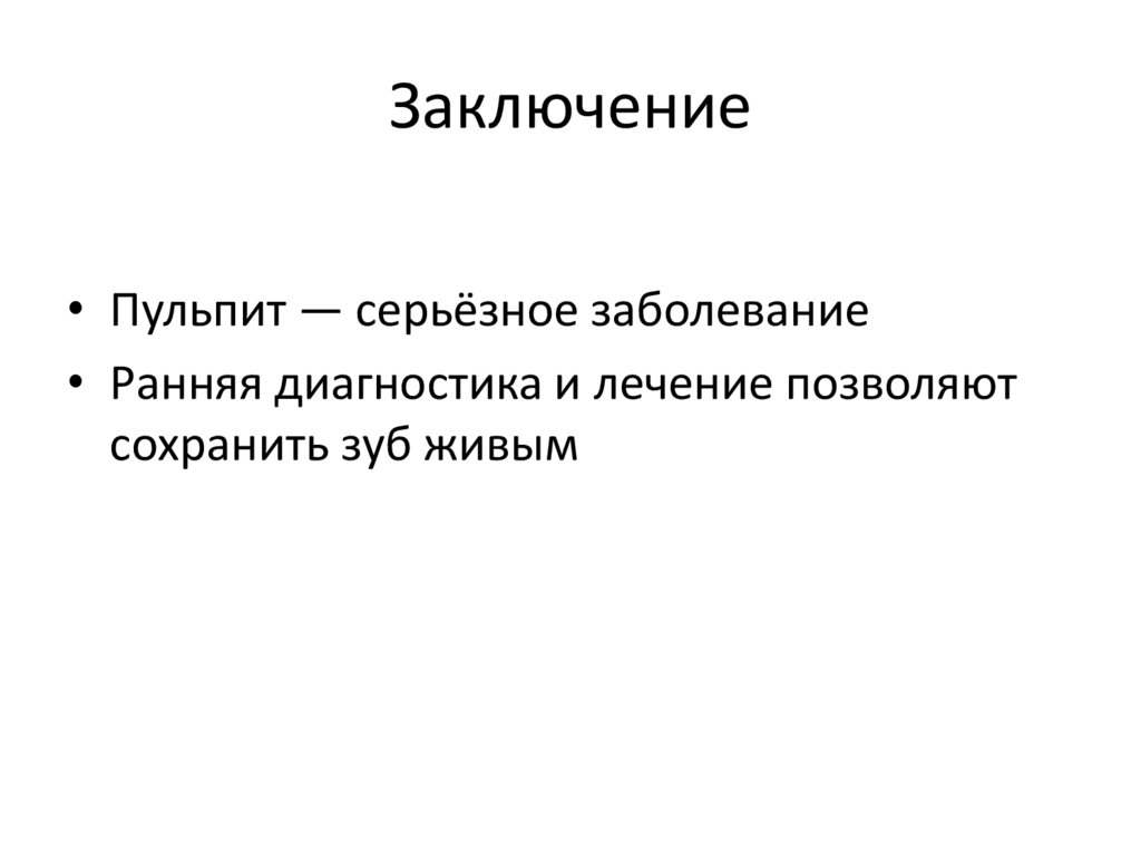 Заключение• Пульпит — серьёзное заболевание