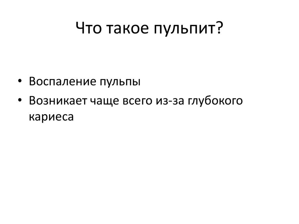 Что такое пульпит?• Воспаление пульпы