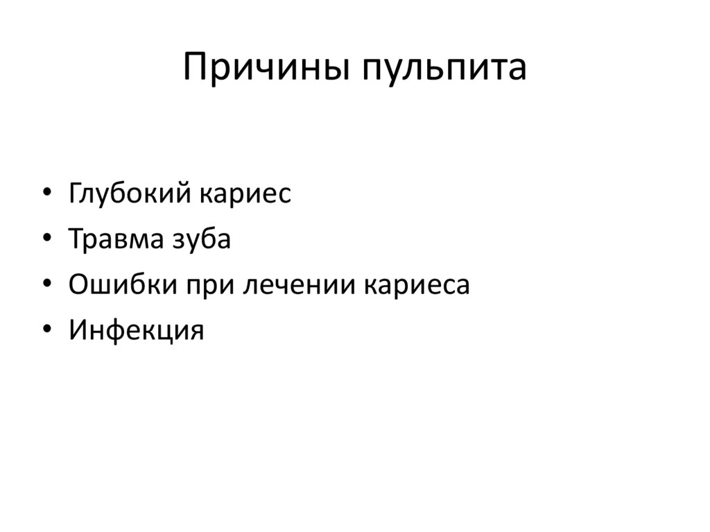 Причины пульпита• Глубокий кариес