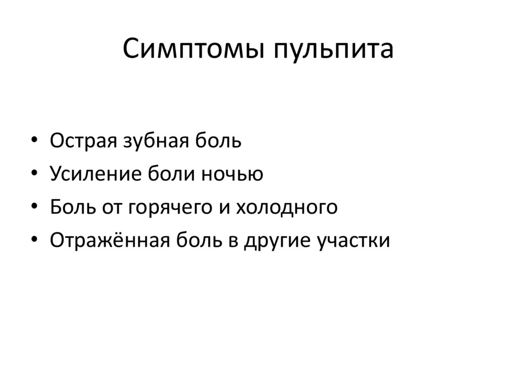 Симптомы пульпита• Острая зубная боль
