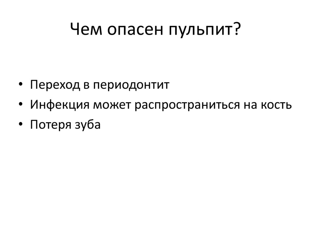 Чем опасен пульпит?• Переход в периодонтит