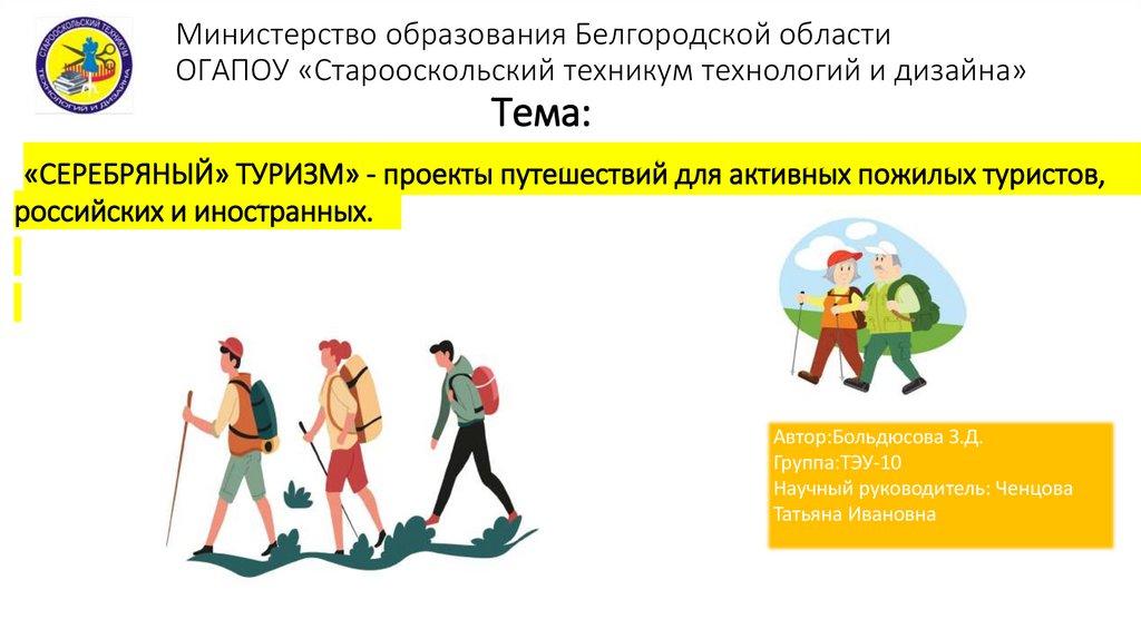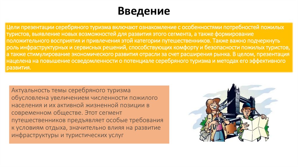 ВведениеЦели презентации серебряного туризма включают ознакомление с особенностями потребностей пожилых