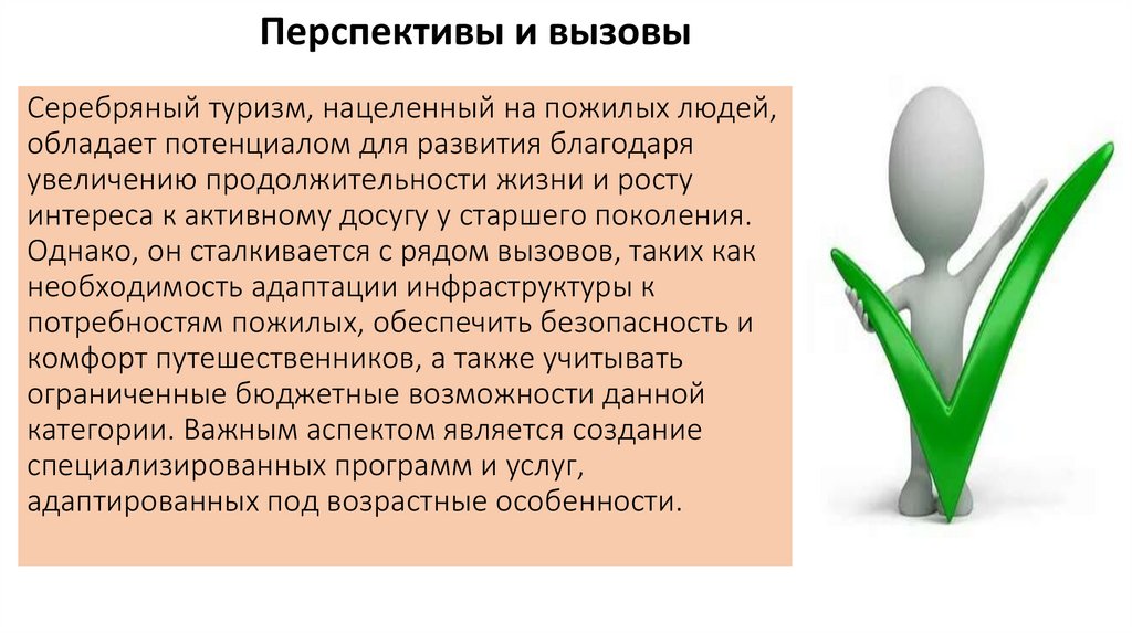 Перспективы и вызовыСеребряный туризм, нацеленный на пожилых людей,