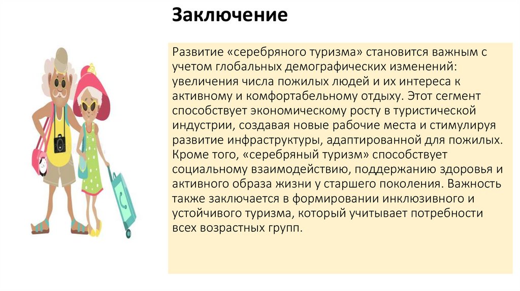 ЗаключениеРазвитие «серебряного туризма» становится важным с