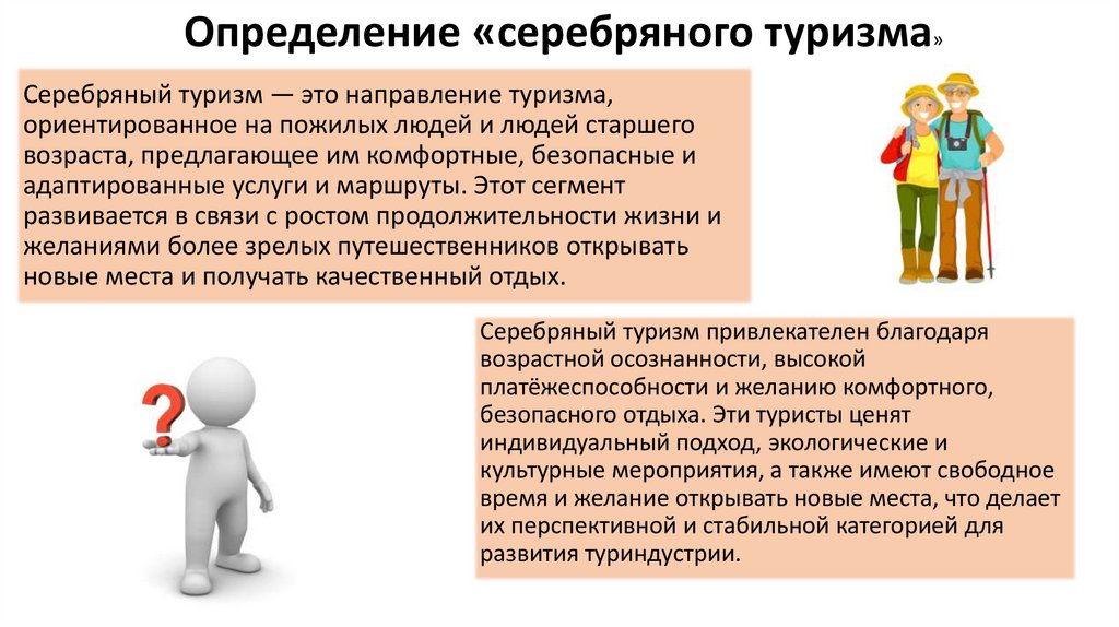 Определение «серебряного туризма»Серебряный туризм — это направление туризма,