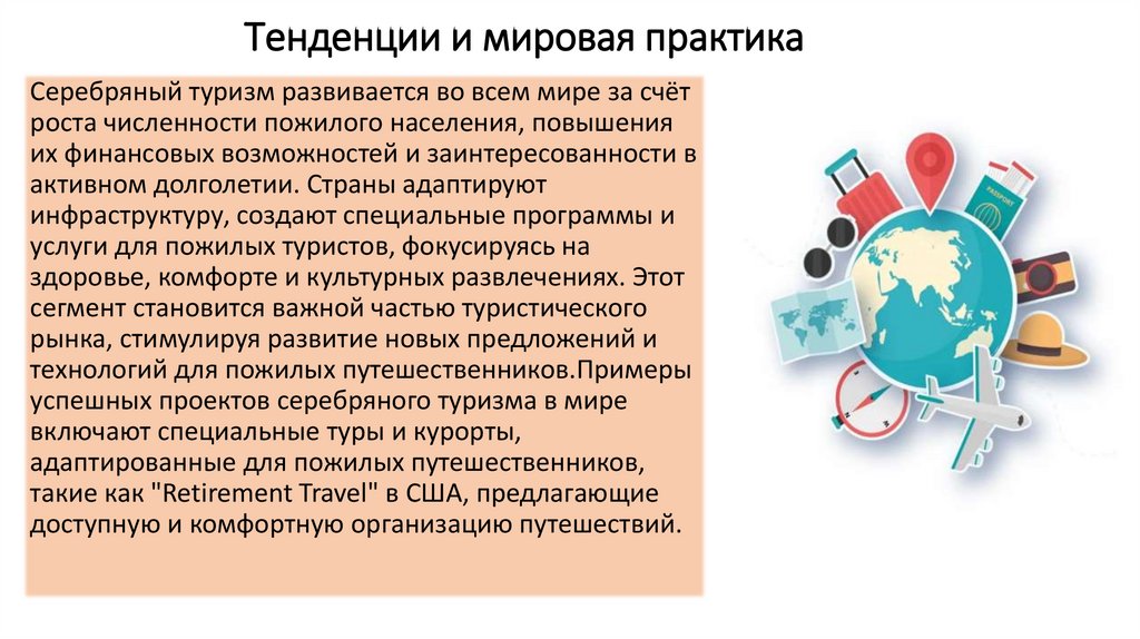 Тенденции и мировая практикаСеребряный туризм развивается во всем мире за счёт