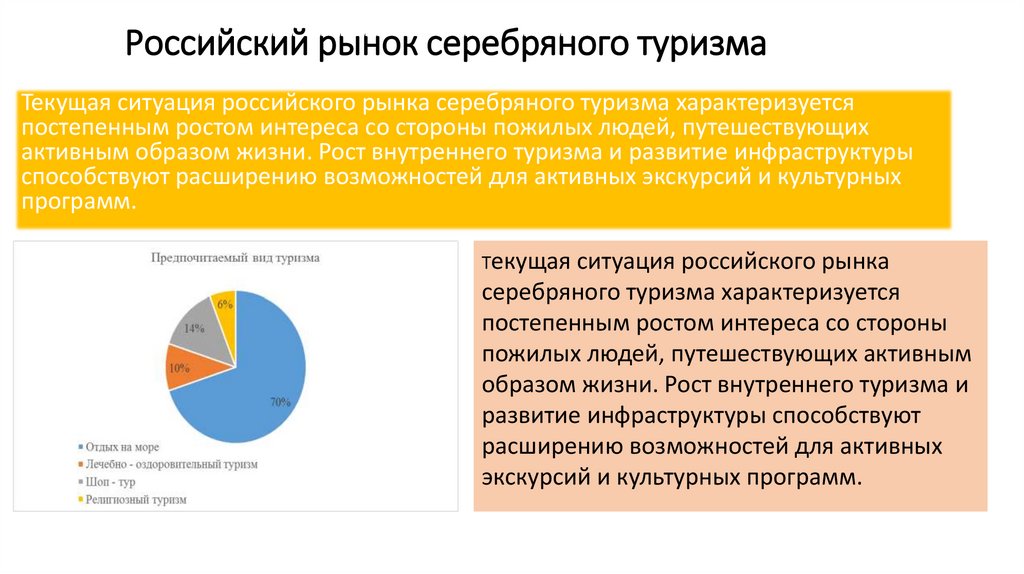 Российский рынок серебряного туризмаТекущая ситуация российского рынка серебряного туризма характеризуется