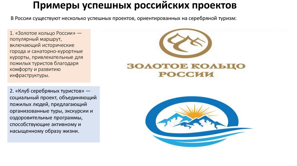 Примеры успешных российских проектовВ России существуют несколько успешных проектов, ориентированных на серебряной туризм: