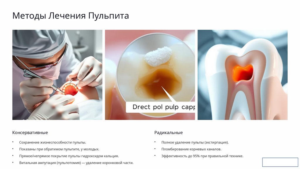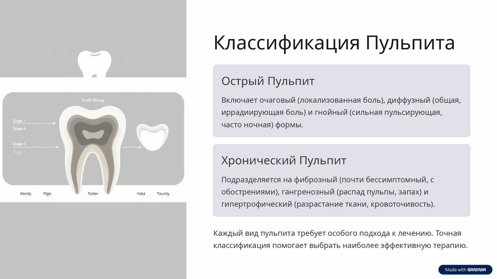 Каждый вид пульпита требует особого подхода к лечению. Точная
