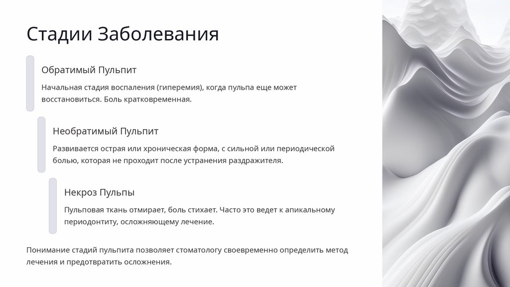 Понимание стадий пульпита позволяет стоматологу своевременно определить метод