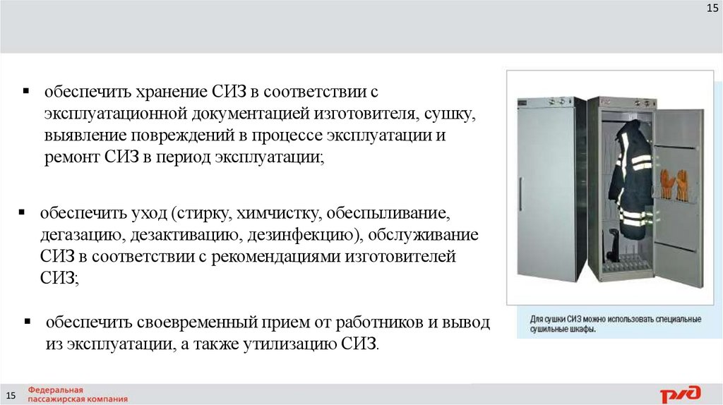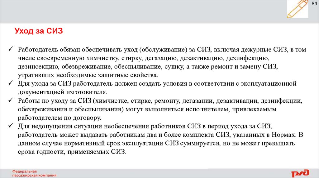 Работодатель обязан обеспечивать уход (обслуживание) за СИЗ, включая дежурные СИЗ, в том