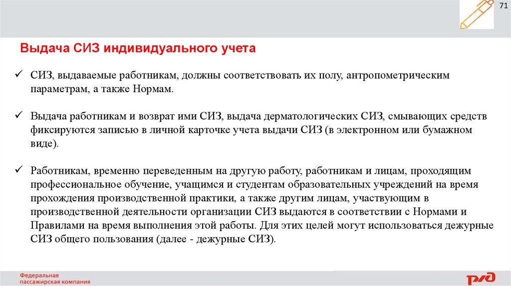 работодателя. Ответственность за сохранность СИЗ несет работник, за которым закреплены