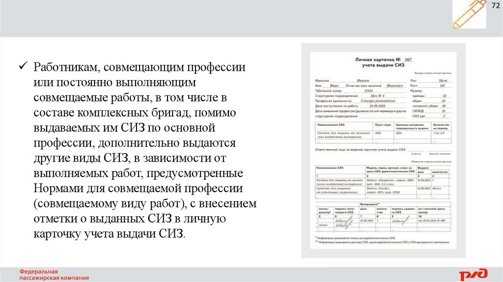 работникам, указанного в личной карточке учета выдачи СИЗ или в карточке выдачи