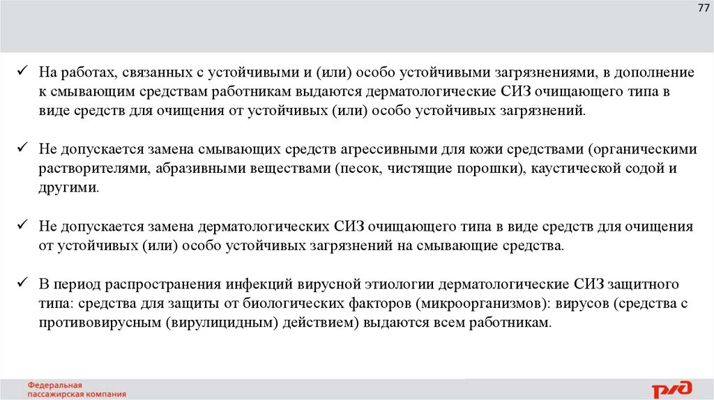 Не допускается замена смывающих средств агрессивными для кожи средствами (органическими