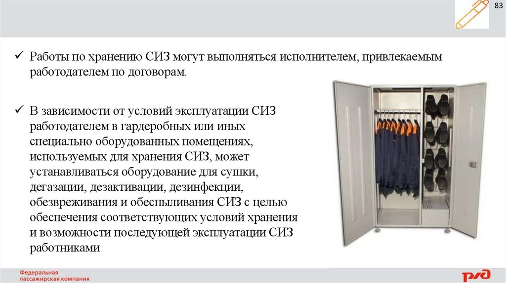 83Работы по хранению СИЗ могут выполняться исполнителем, привлекаемым