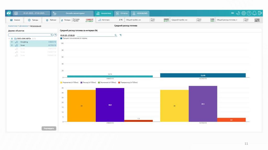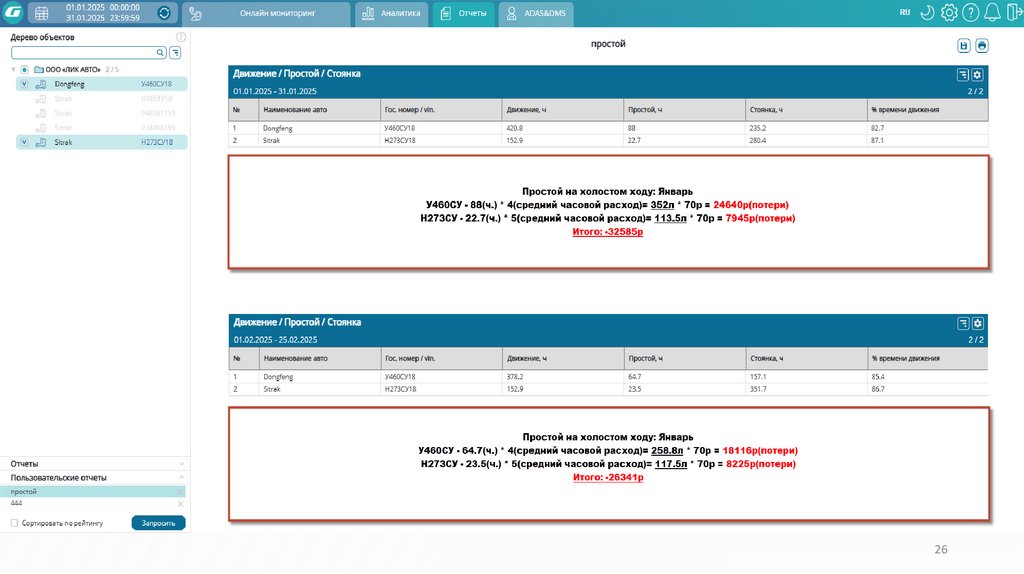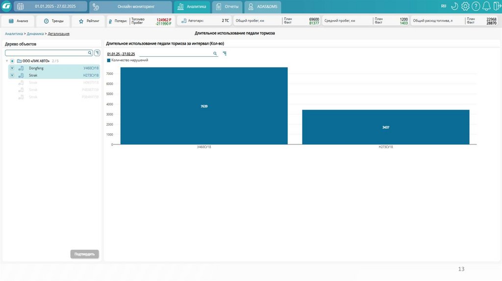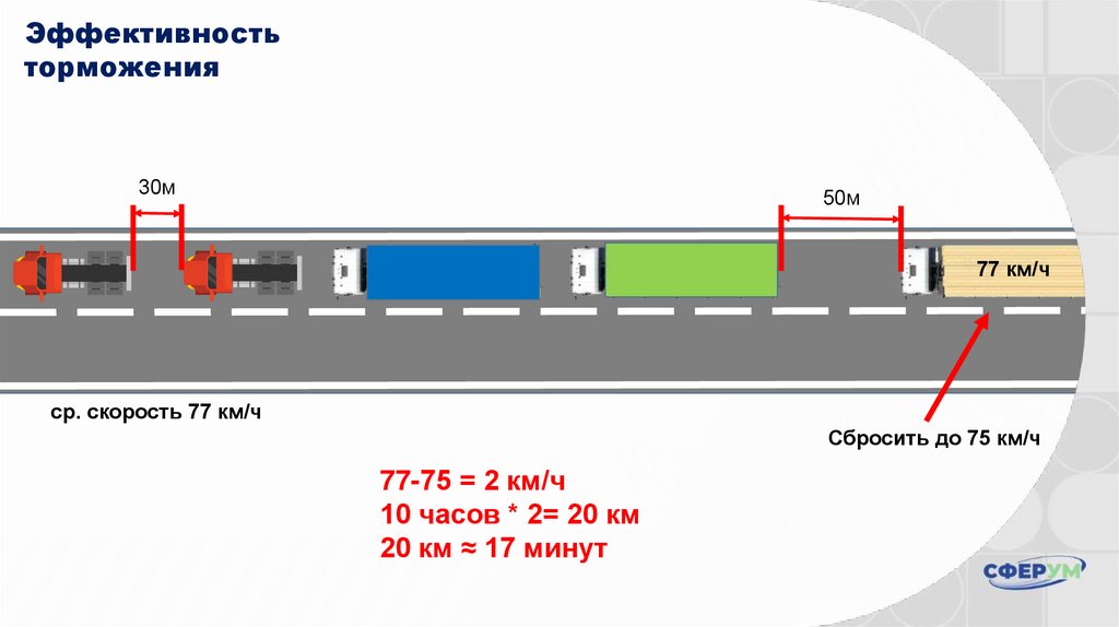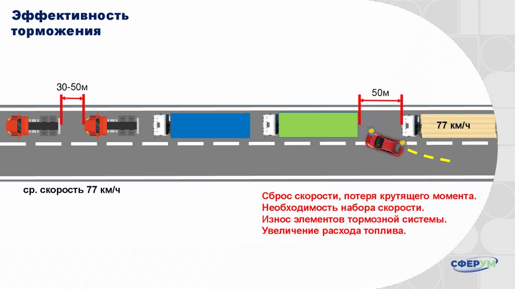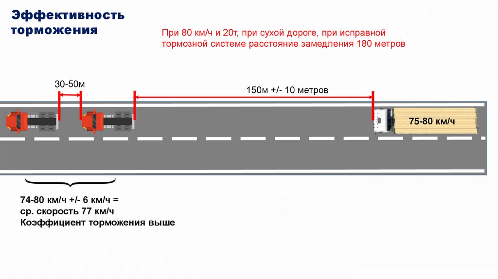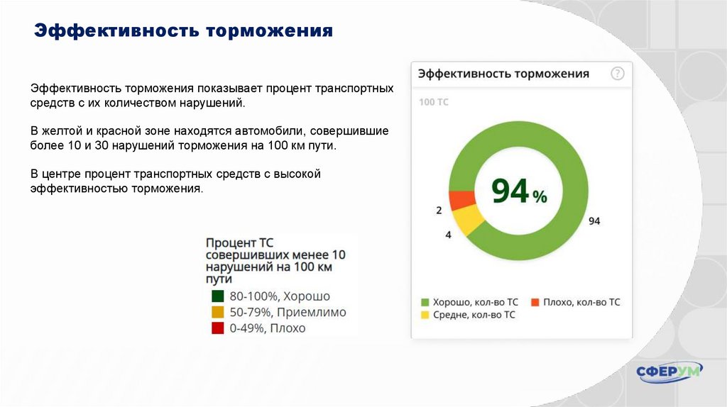 Эффективность торможенияЭффективность торможения показывает процент транспортных