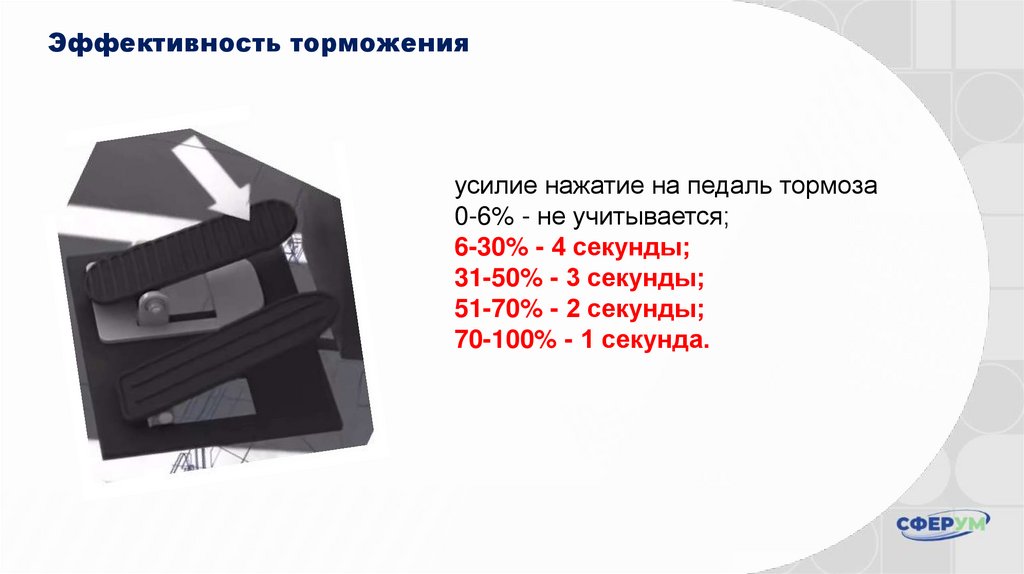 Эффективность торможенияусилие нажатие на педаль тормоза