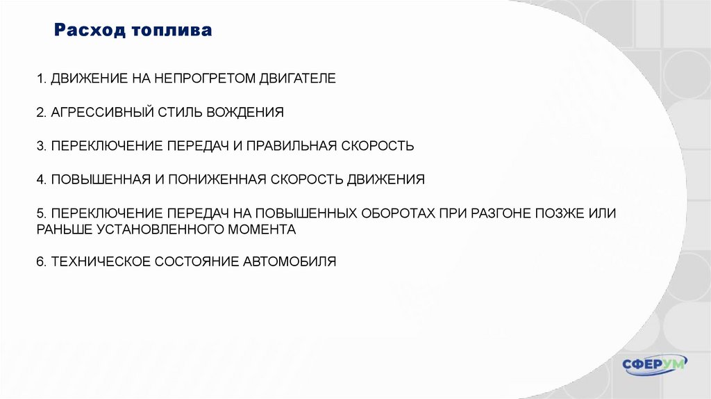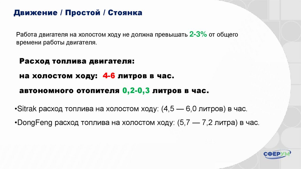 Расход топлива1. ДВИЖЕНИЕ НА НЕПРОГРЕТОМ ДВИГАТЕЛЕ