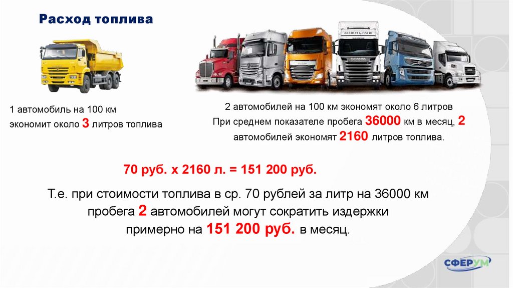 Расход топлива2 автомобилей на 100 км экономят около 6 литров