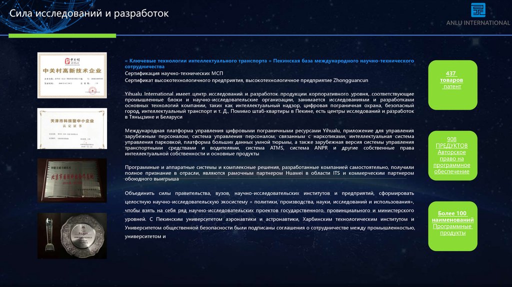 основных технологий компании, таких как интеллектуальный надзор, цифровая пограничная охрана, безопасный
