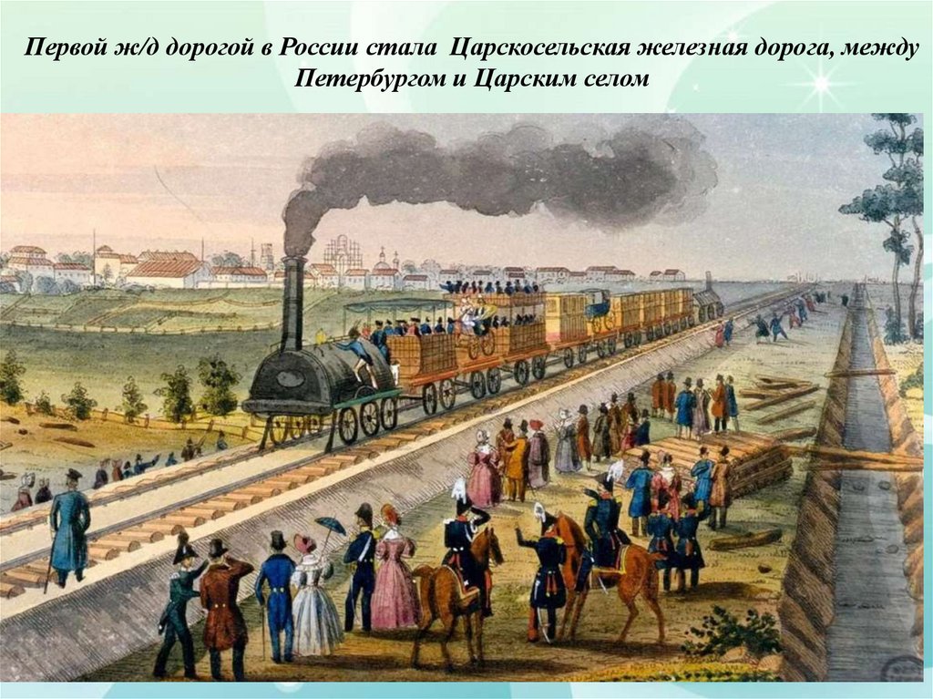 Первой ж/д дорогой в России стала Царскосельская железная дорога, междуПетербургом и Царским селом