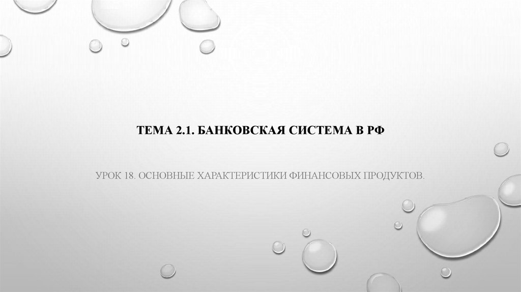 ТЕМА 2.1. БАНКОВСКАЯ СИСТЕМА В РФУРОК 18. ОСНОВНЫЕ ХАРАКТЕРИСТИКИ ФИНАНСОВЫХ ПРОДУКТОВ.