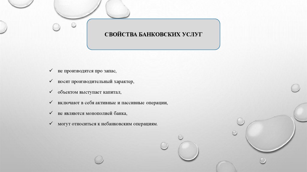 СВОЙСТВА БАНКОВСКИХ УСЛУГне производятся про запас,