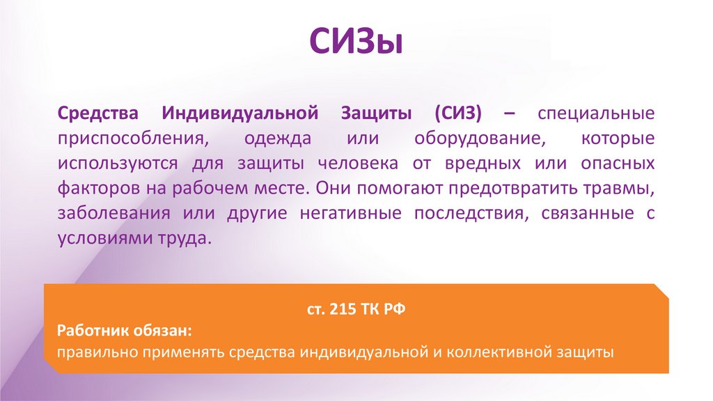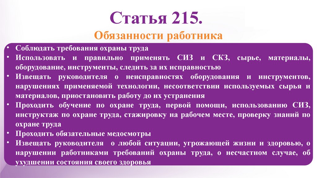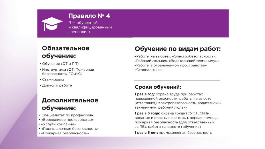 • Проходить обучение по охране труда, первой помощи, использованию СИЗ,