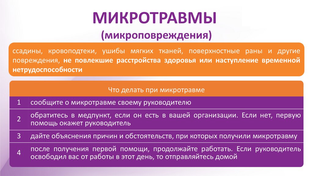 дайте объяснения причин и обстоятельств, при которых получили микротравму