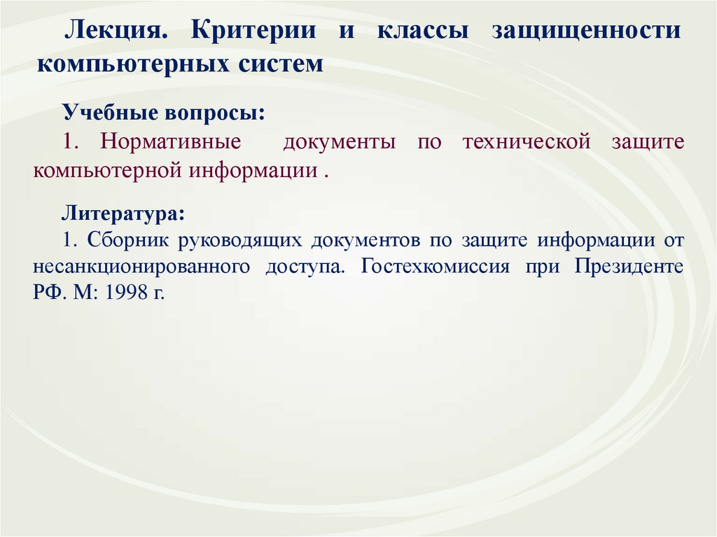 Лекция. Критерии и классы защищенностикомпьютерных систем