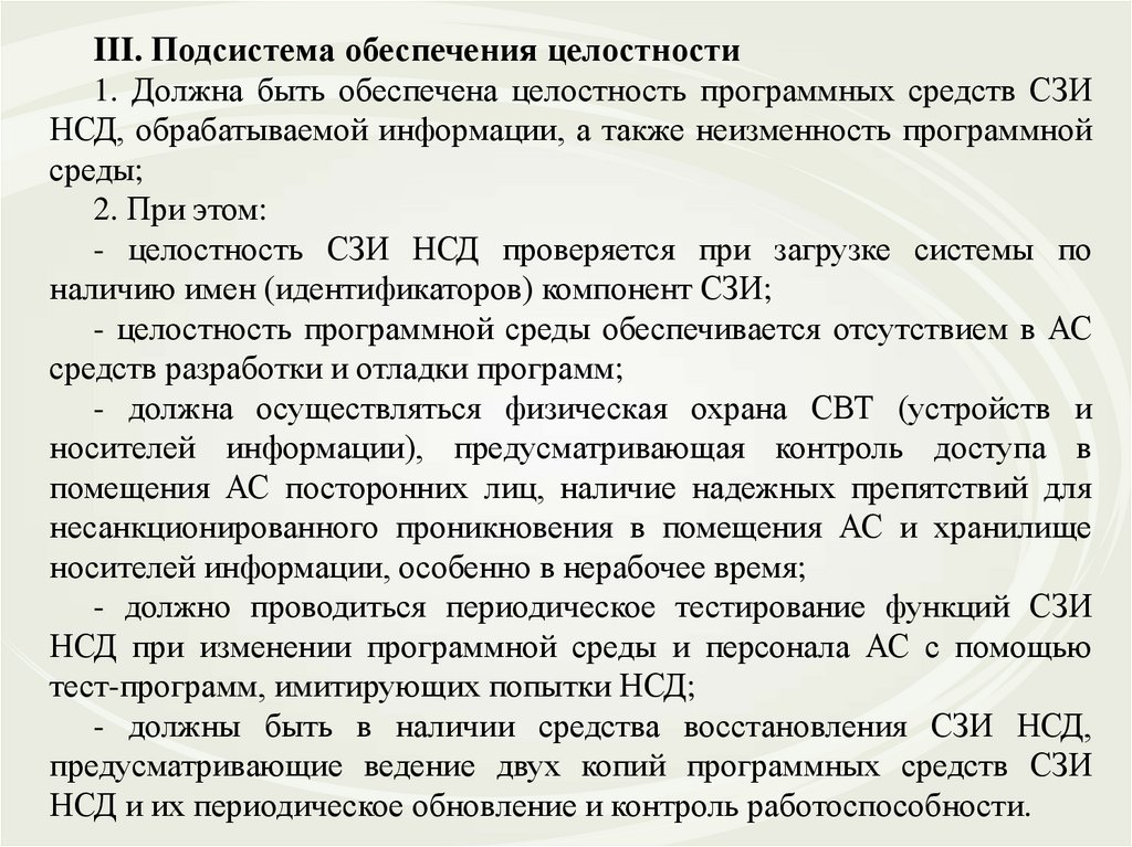 доступа, в том числе от компьютерных вирусов, от утечки за счет побочных