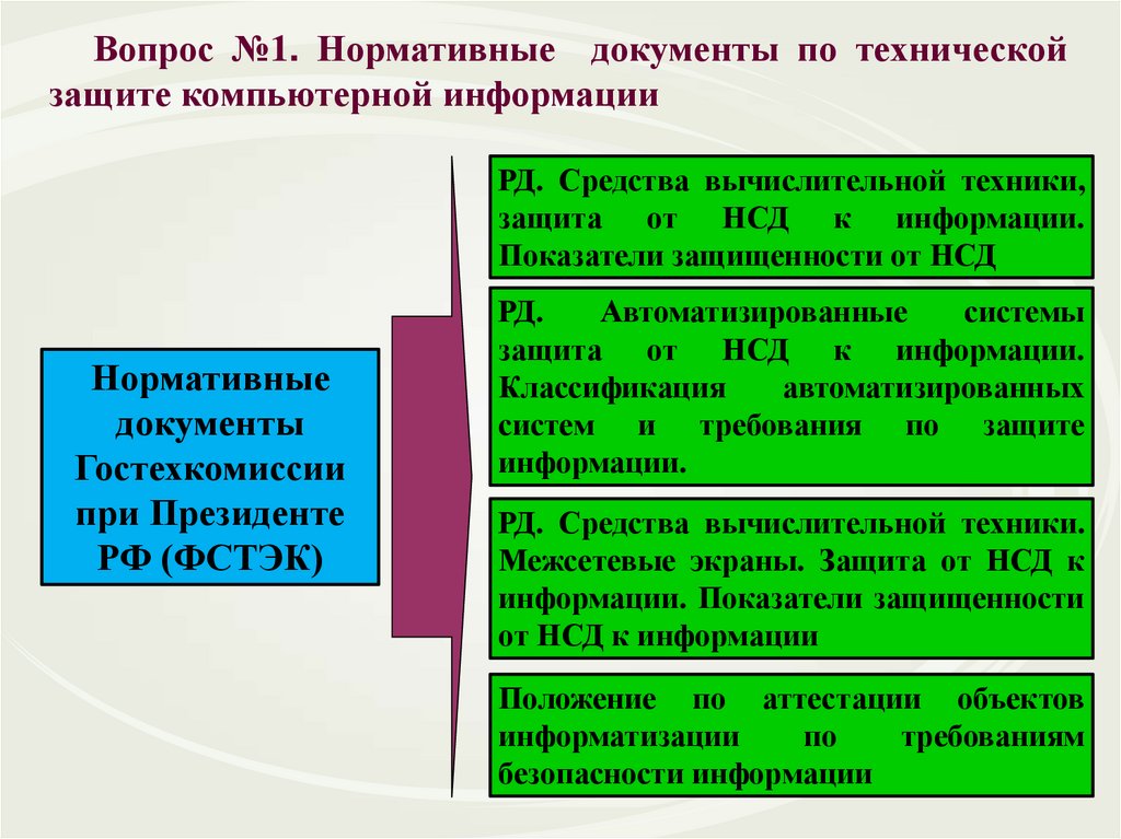 Вопрос №1. Нормативные документы по техническойзащите компьютерной информации