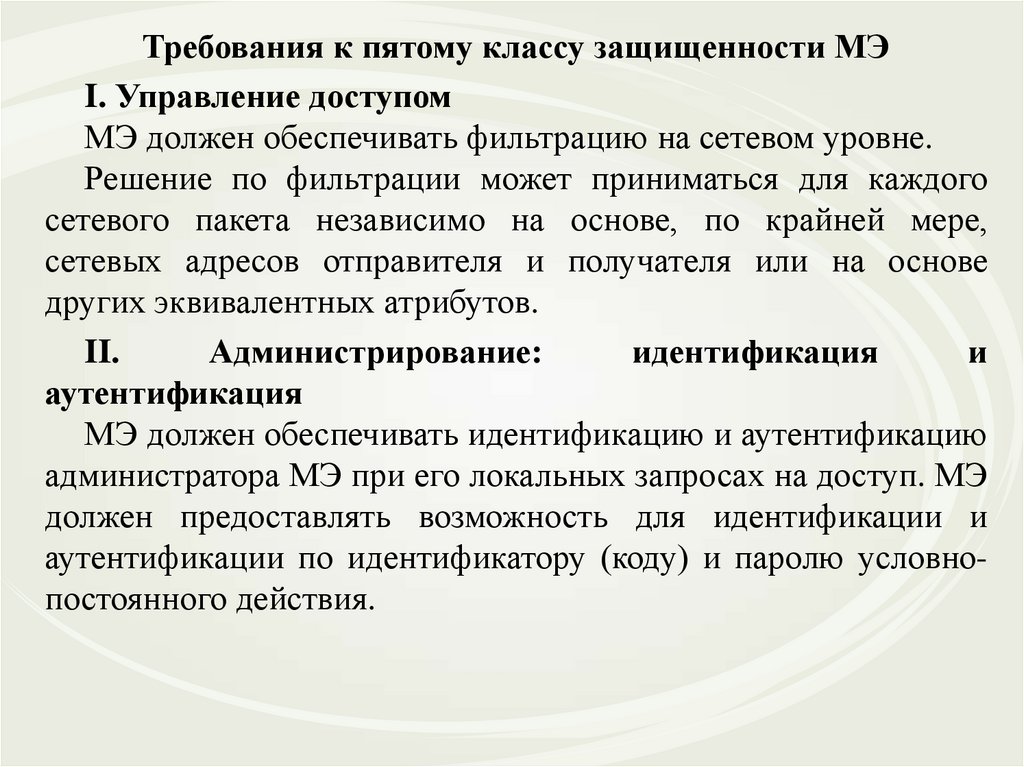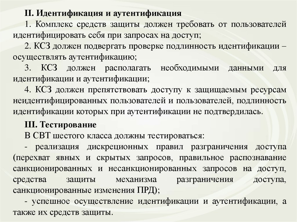 II. Идентификация и аутентификация1. Комплекс средств защиты должен требовать от пользователей