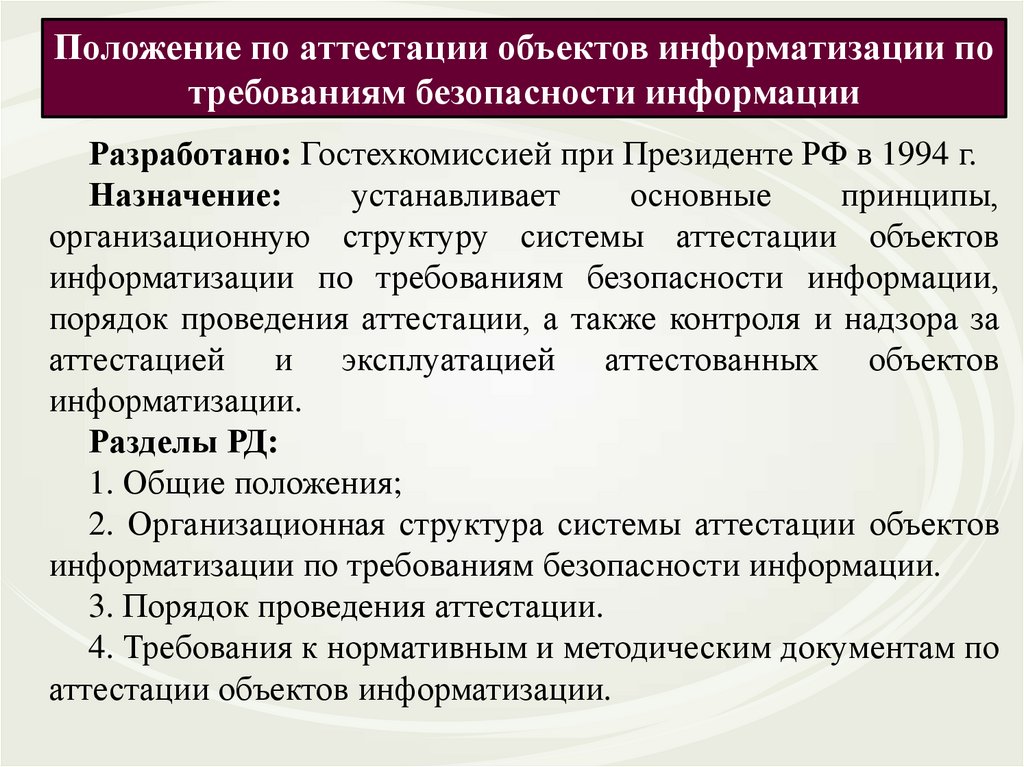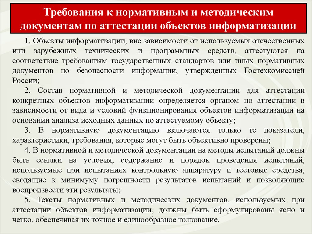 Требования к нормативным и методическимдокументам по аттестации объектов информатизации
