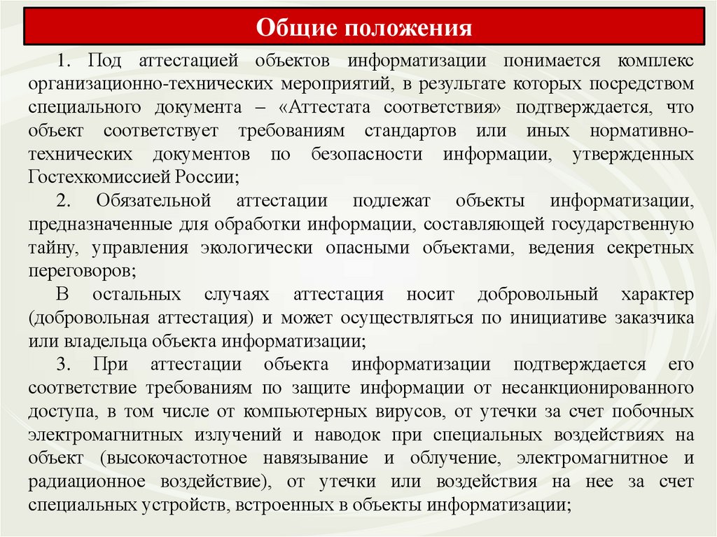 Общие положения1. Под аттестацией объектов информатизации понимается комплекс