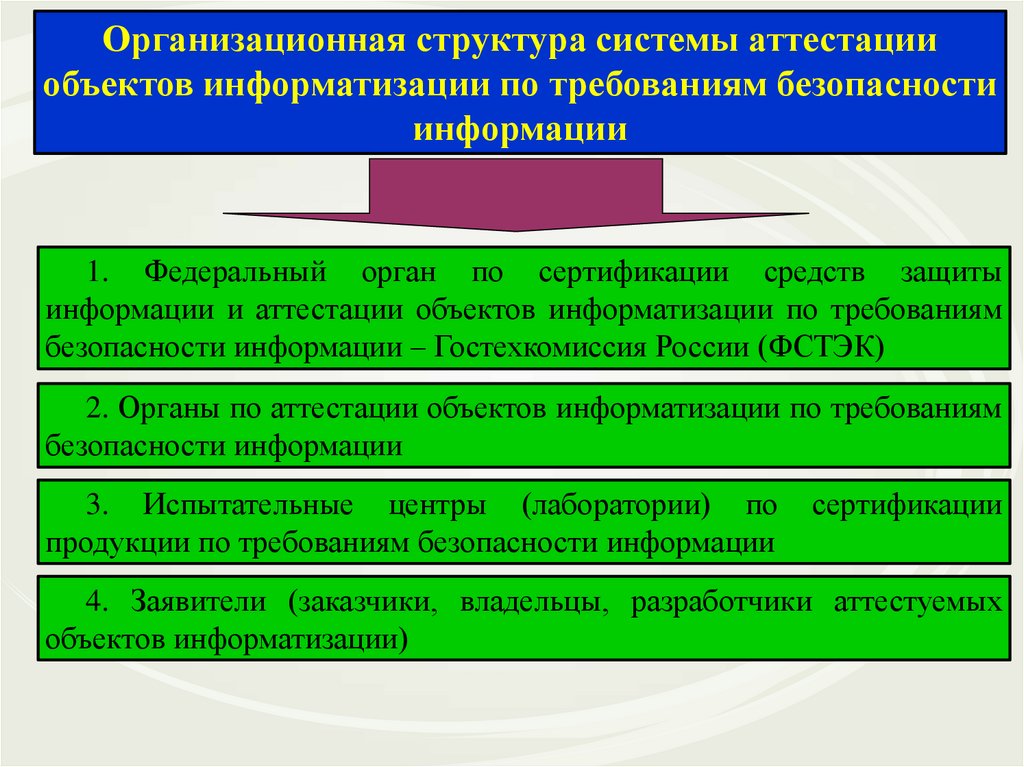 Организационная структура системы аттестацииобъектов информатизации по требованиям безопасности