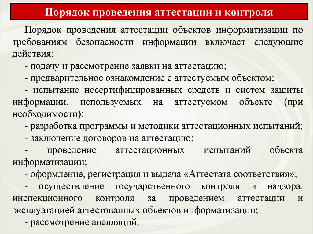 Порядок проведения аттестации и контроляПорядок проведения аттестации объектов информатизации по